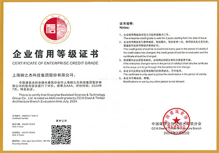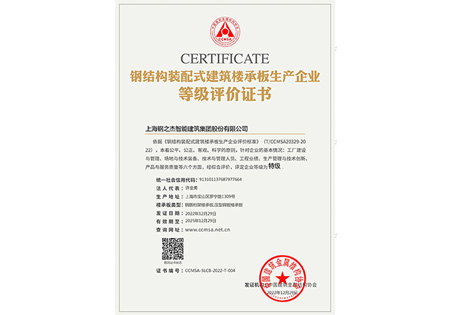 鋼結構裝配式建筑樓承板生產企業等級評價證書-特級