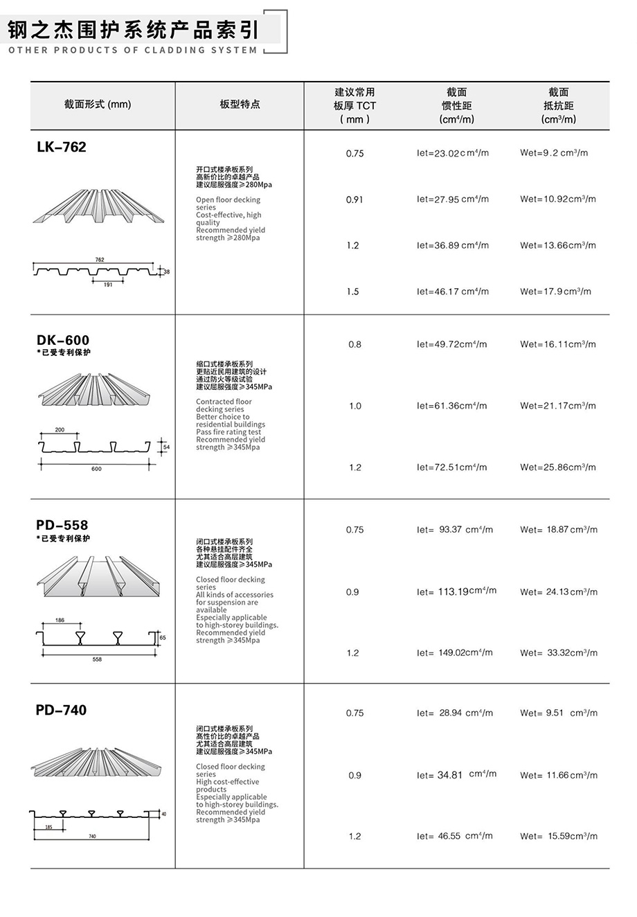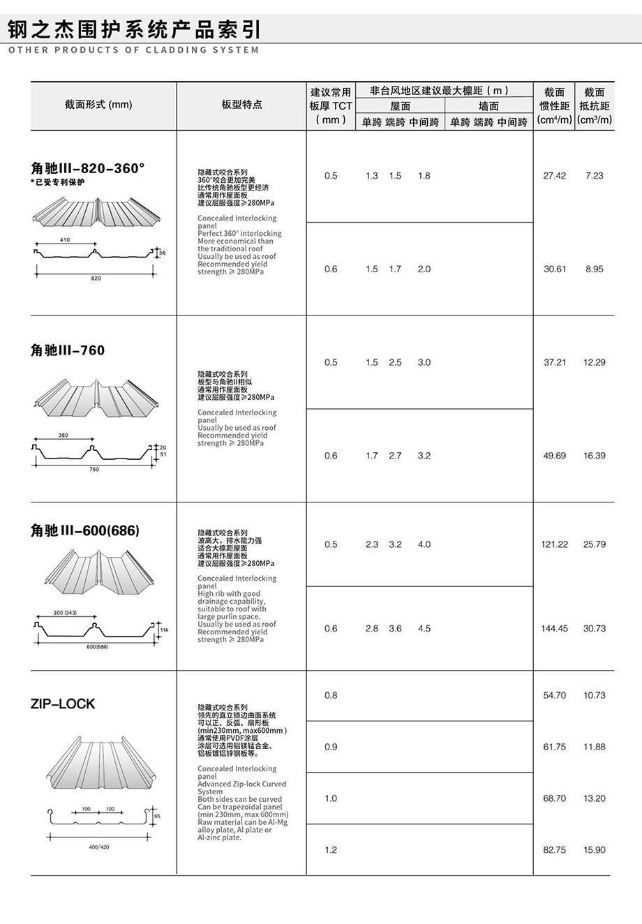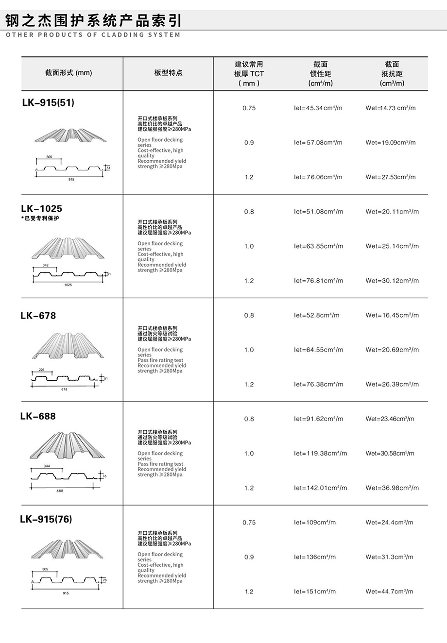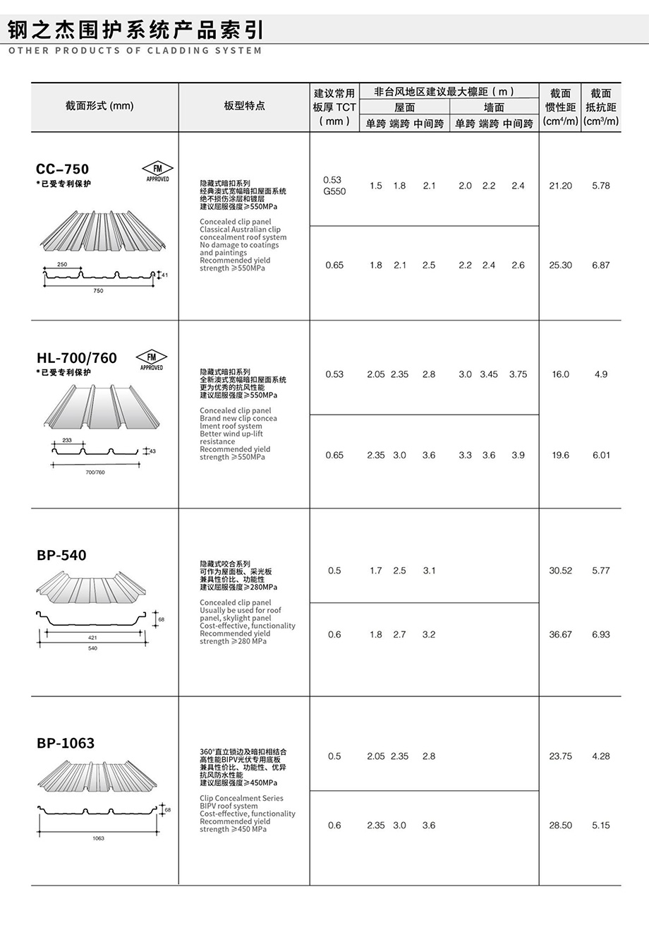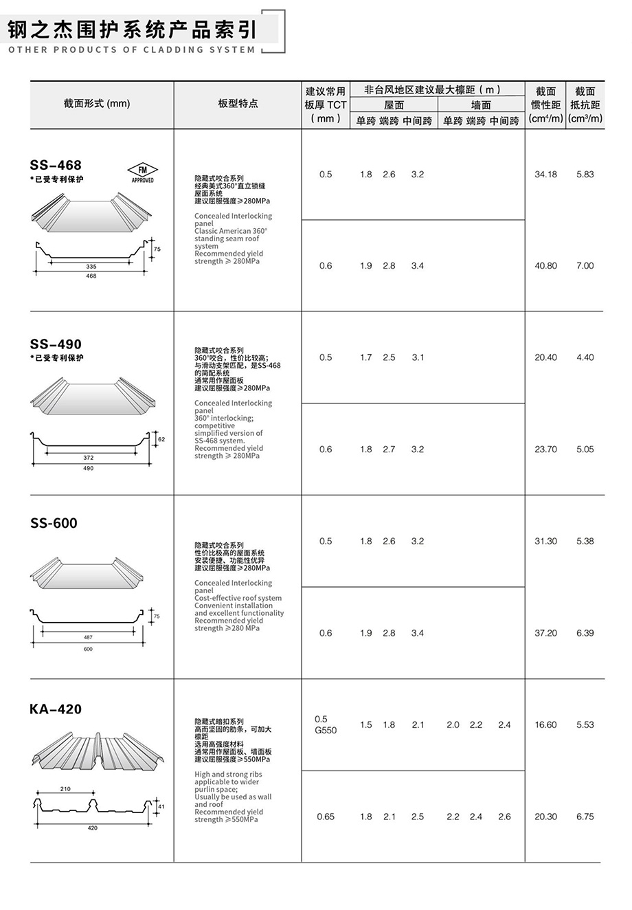 領(lǐng)先的預(yù)制金屬屋(墻)面和樓承板系統(tǒng)產(chǎn)品索引
