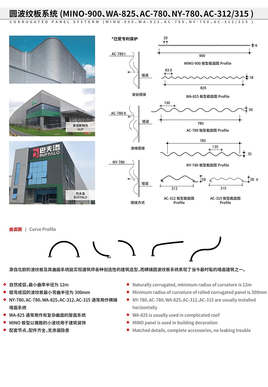 圓波紋板系統(MINO-900、WA-825、AC-780、AC-312、AC-315)